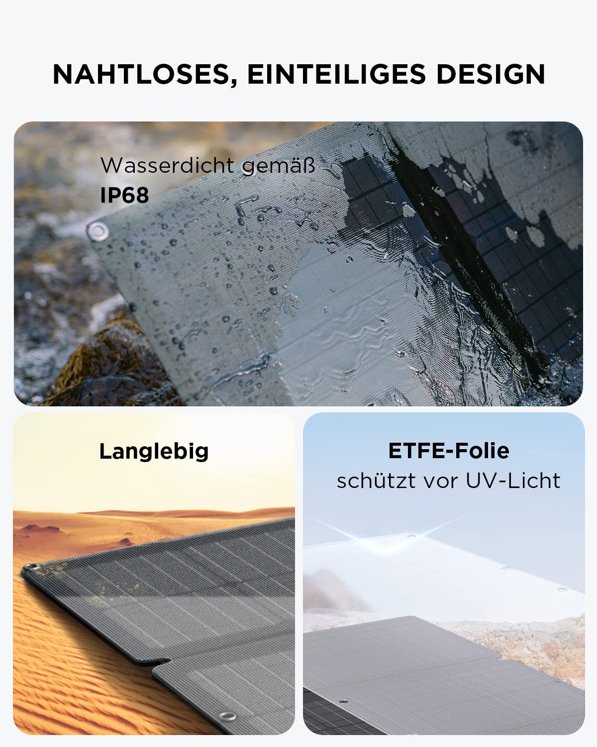 - Hergestellt aus hochfesten Materialien und mit IP68-Zertifizierung ist unser tragbares 160-W-Solarpanel bereit, Sie bei allen Wetterbedingungen mit Strom zu versorgen, egal wohin Sie gehen. Darüber hinaus hat RIVER 2 Max eine der umfangreichsten Garantien in der Branche, so dass wir Sie für die nächsten fünf Jahre geschützt haben.