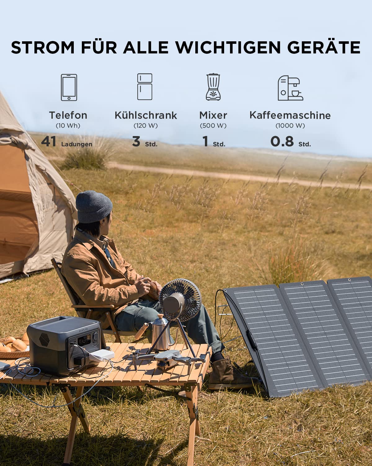 - Grab-and-Go-power: Der RIVER 2 Max Solargenerator ist leicht und einfach zu transportieren. Er ist ideal für Camping und Outdoor-Aktivitäten. Durch die Kombination des leicht zu tragenden RIVER 2 Max von 6 kg und dem tragbaren, faltbaren 160-W-Solarpanel mit einem einstellbaren Winkel macht der RIVER 2 Max Solargenerator die positive Energie für das Klima leicht zu tragen.