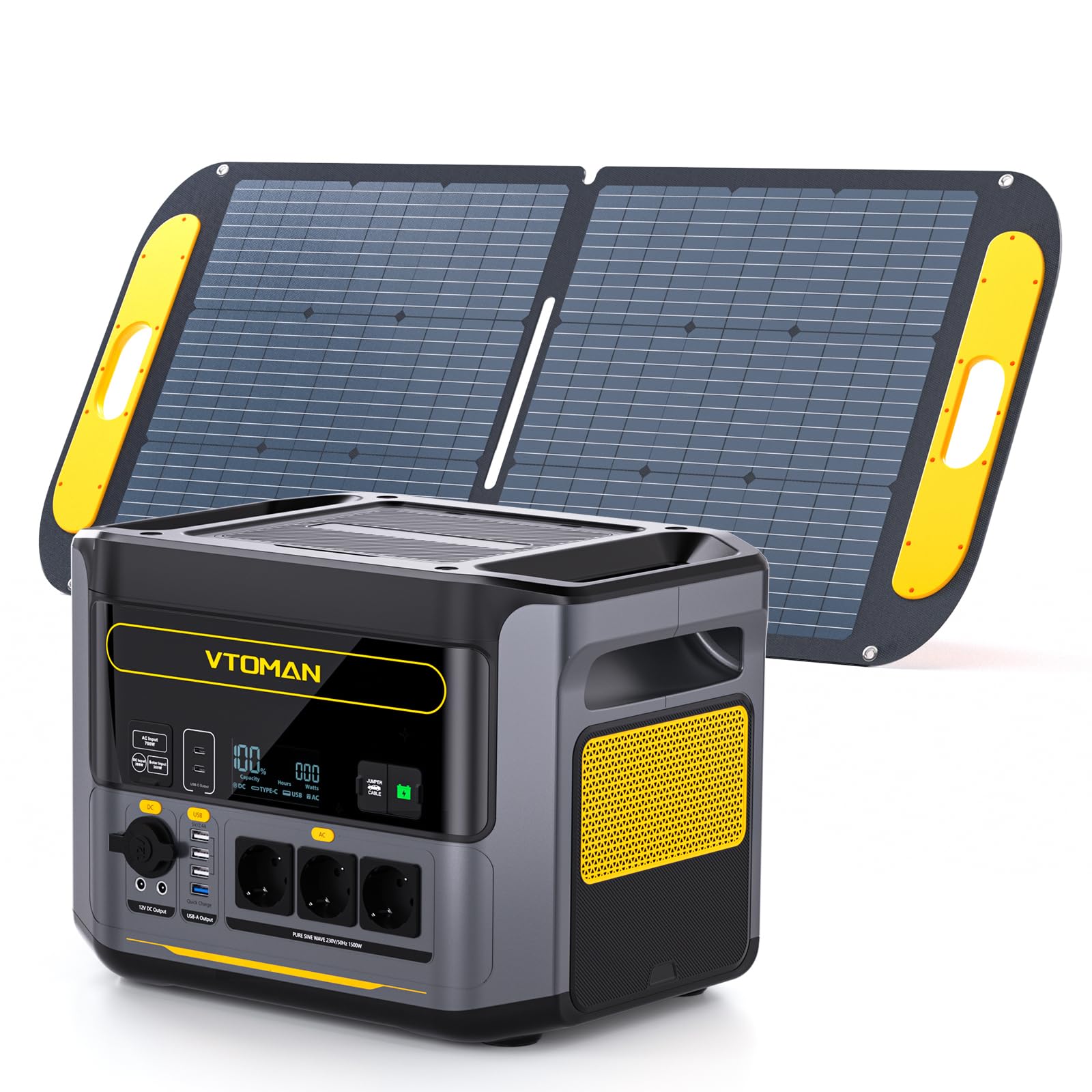 VTOMAN Tragbare Powerstation 1000W (2000W Spitze), 828Wh LiFePO4 Solargenerator mit 110W Solarpanel, 0-80% in 60 Min Schnellladung, Erweiterbar bis 2376Wh für Notfall, Camping, Reise, Wohnmobil